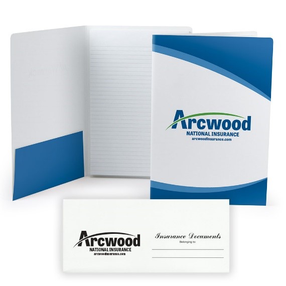 Personalization: The insurance company’s logo and website were printed on the document pouch in 1 color. Full 4-color artwork (provided by customer) with the company logo was printed on the mini padfolio.